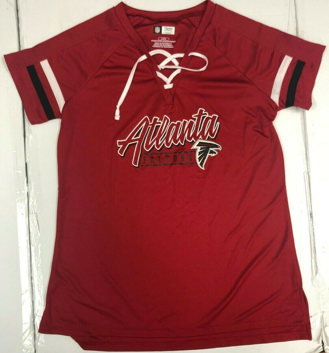ATLANTA FALCONS Women's LACES V-NECK Dri Fit Football Jersey LARGE 12/14