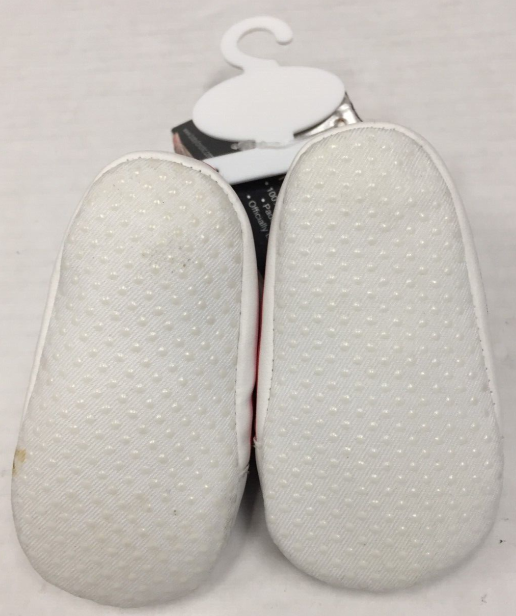 - Features a soft fabric upper with white laces and grippers on the bottom with padded soles