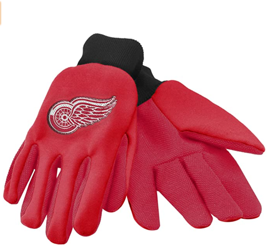 Detroit Red Wings General Purpose Adult Size Gloves OFFICIALLY LICENSED MERCHANDISE Features team colored beaded palm Durable design for comfort, while completing your household and utility needs Features rib-knit wrist cuffs so the gloves fit perfectly Measures 10" x 5", One Size fits most BRAND NEW FREE SHIPPING