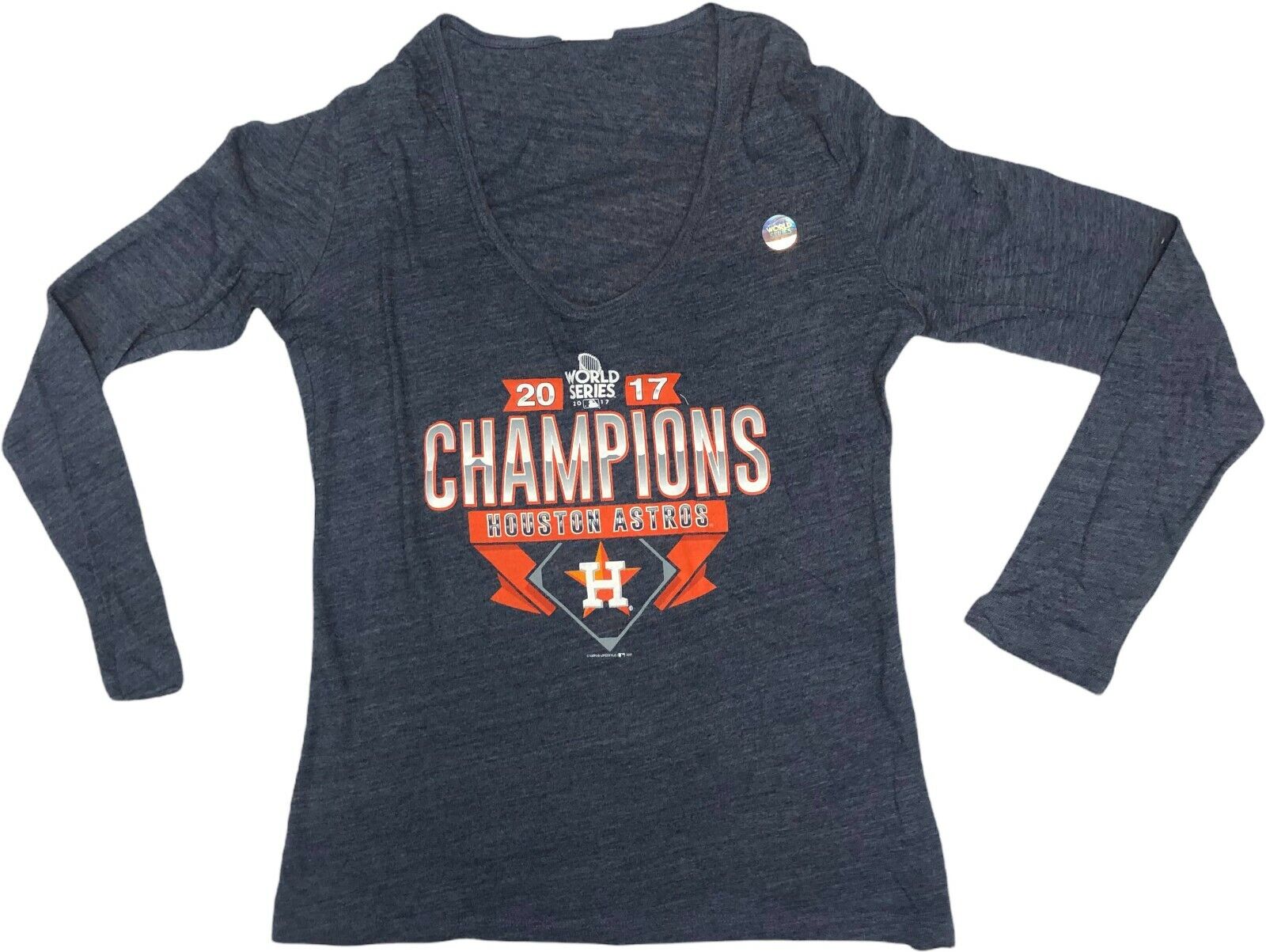 Houston Astros Women's 2017 World Series Champions Long Sleeve T-Shirt Large BRAND NEW WAREHOUSE FIND 100% Authentic Officially Licensed Merchandise 50/50 Cotton Soft and Comfortable Machine Washable Fast and Free Lighting Shipping Ebay Seller Since 1998