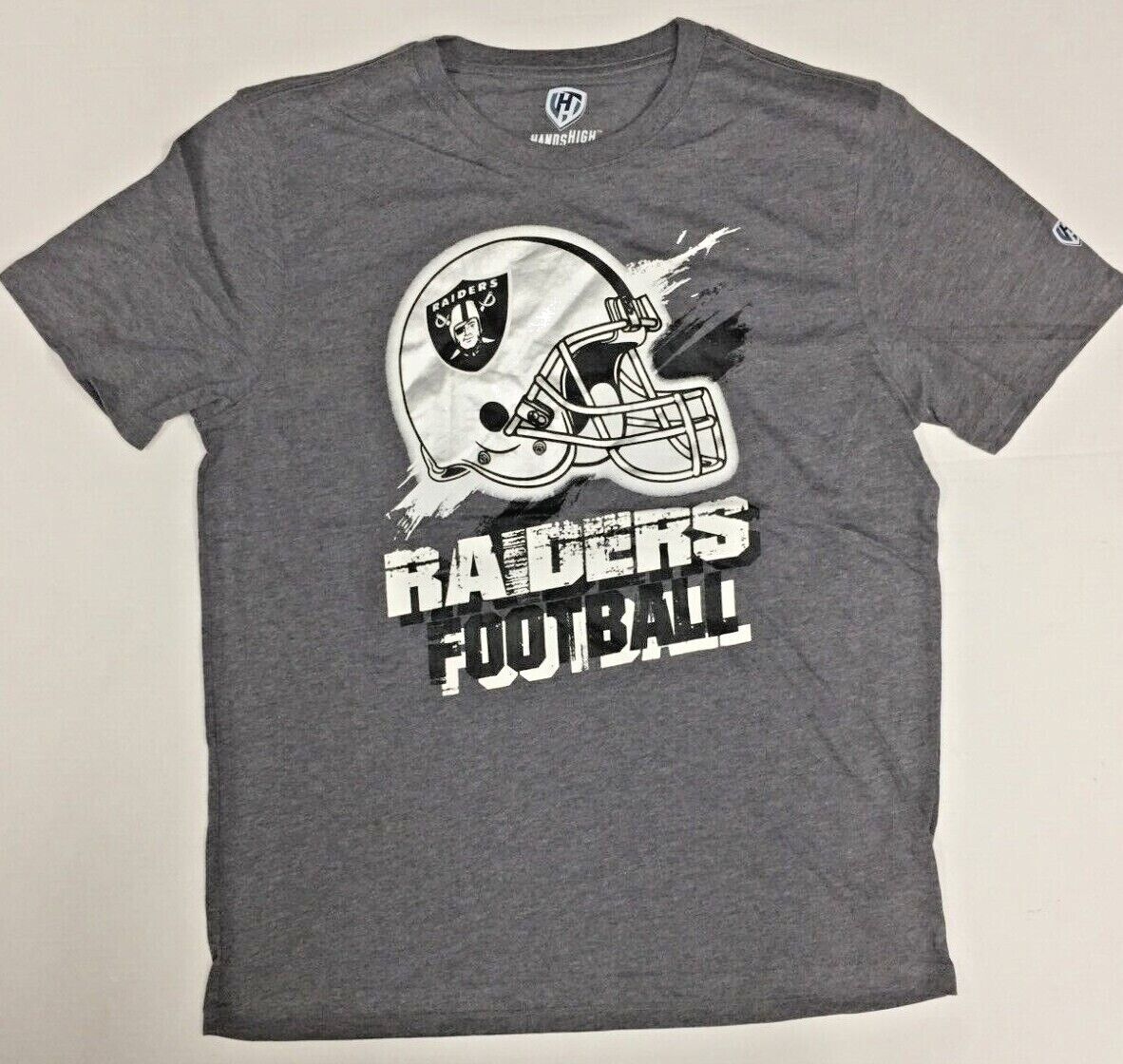 Las Vegas Raiders Men's Hands High Helmet Graphic T-Shirt Gray Large Officially Licensed 100% Authentic Merchandise 50% polyester 38% cotton 12% rayon Brand New Fast and Free Shipping US Based EBay seller since 1998