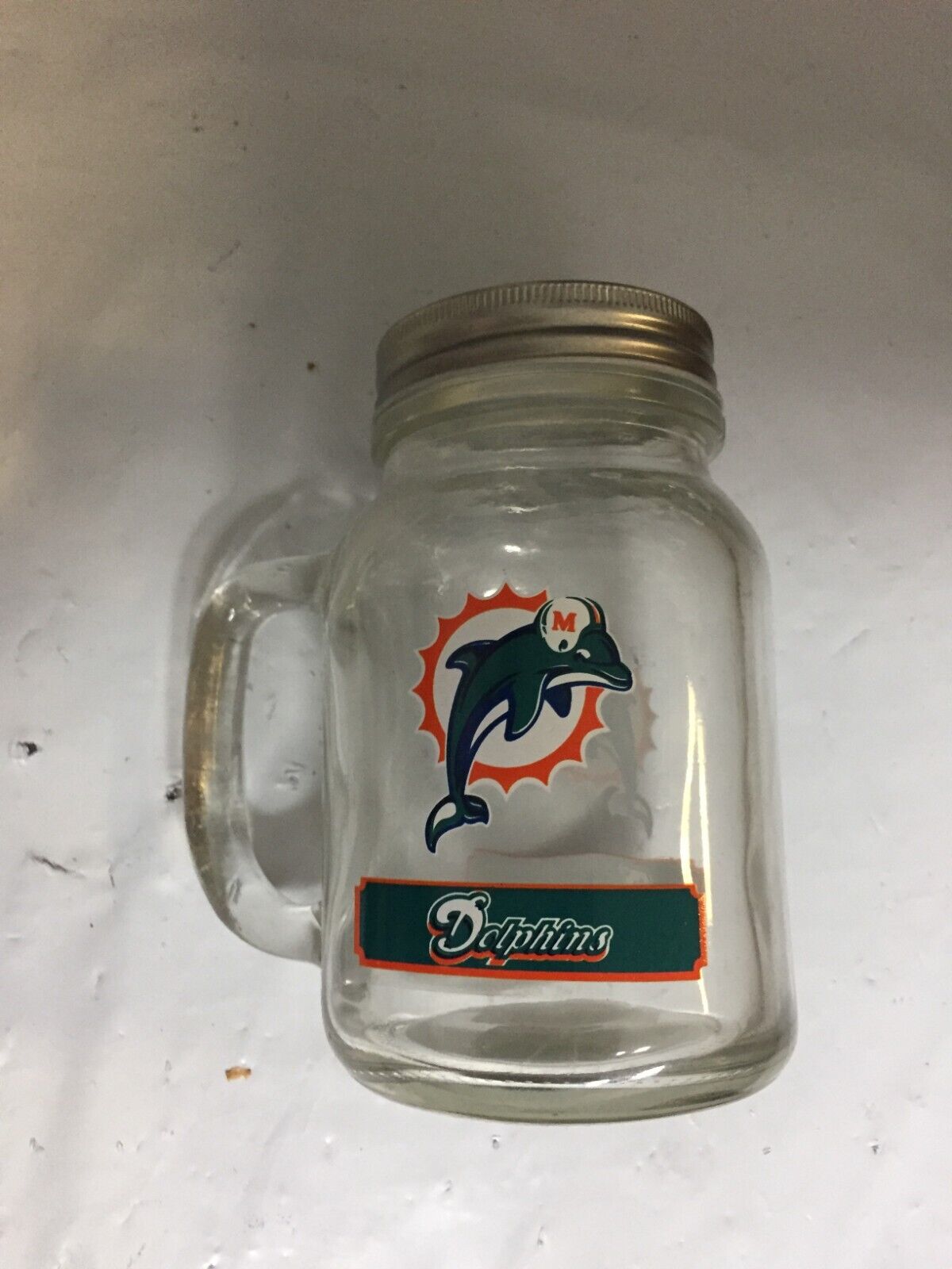 Miami Dolphins NFL 16oz Glass Mason Jar White