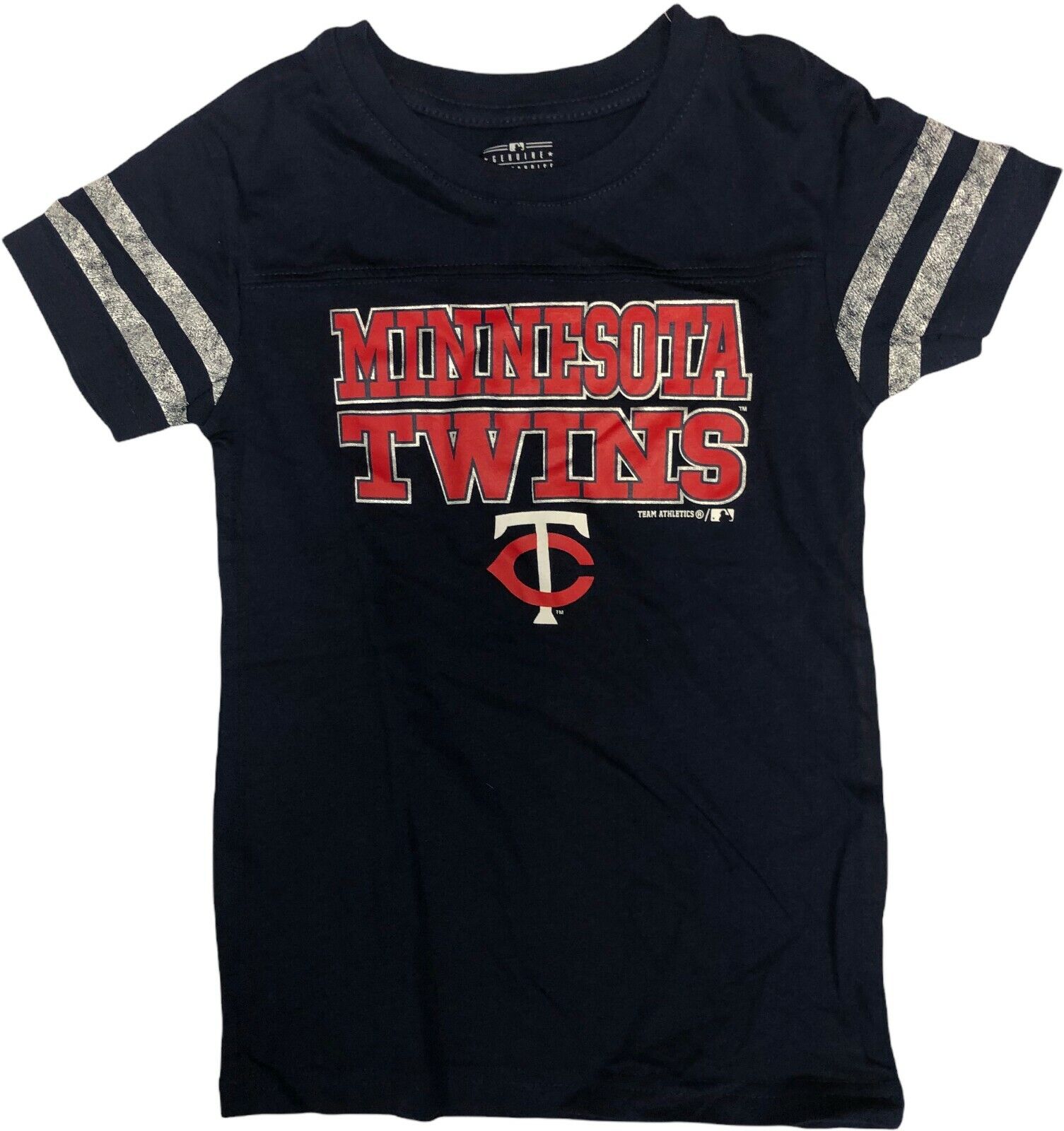 Minnesota Twins Girl's Short Sleeve Jersey Stripe T-Shirt Small 6/6X 100% Authentic Officially Licensed Merchandise 50/50 Cotton Machine Washable Fast and Free Lighting Shipping Trusted US Based Ebay Seller Since 1998