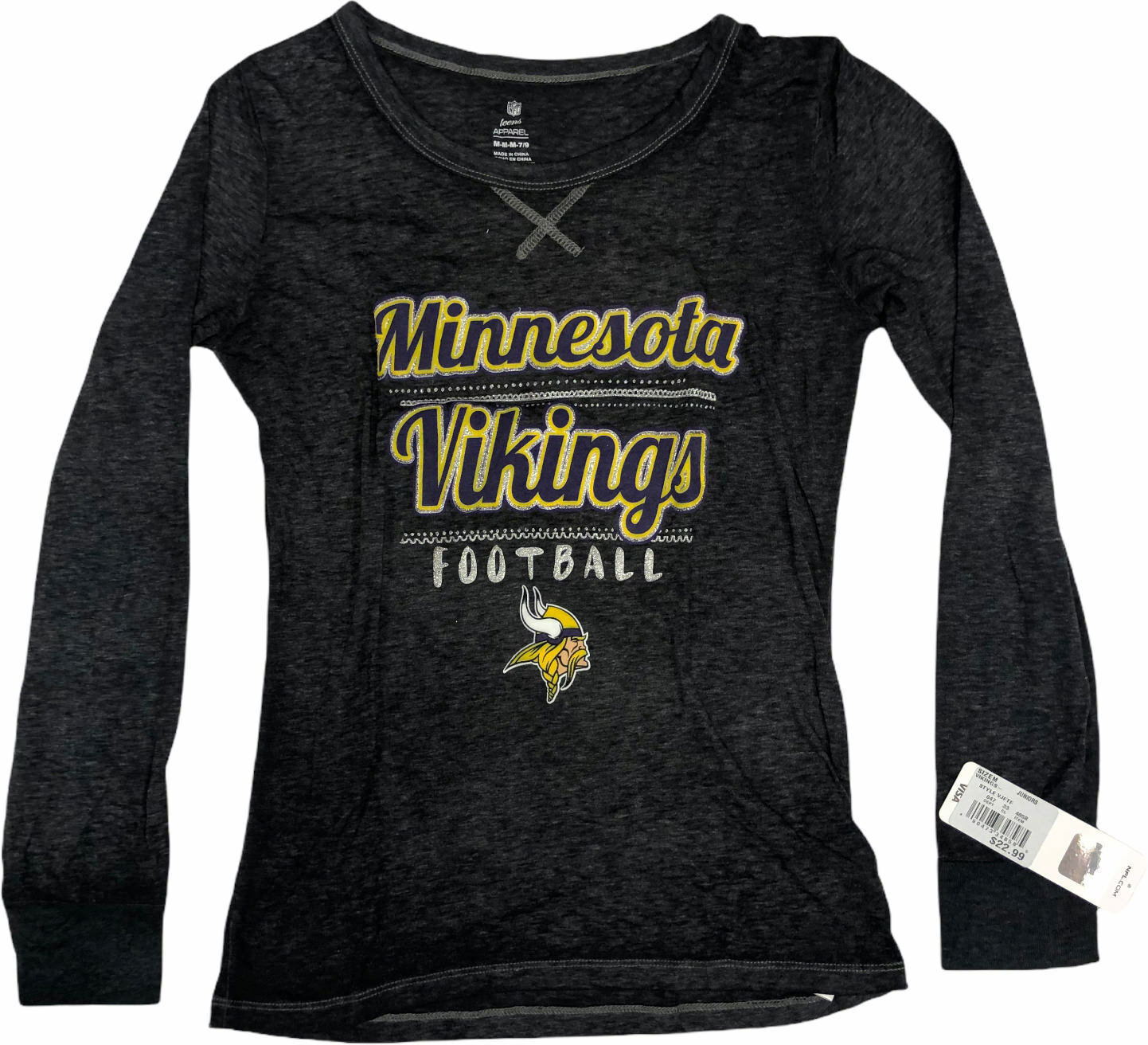 Minnesota Vikings Women's Long Sleeve Juniors Medium 7/9 Silver Accents Gray 100% Authentic Licensed Merchandise Fast and Free Shipping US Based Ebay Seller Since 1998