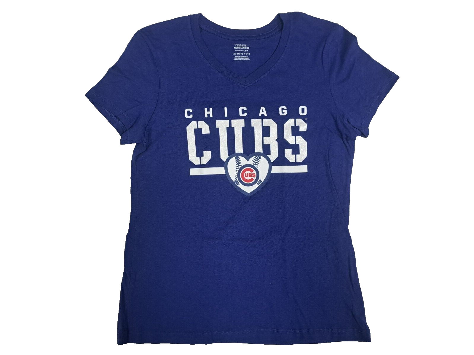 MLB Chicago Cubs Sparkle Youth Girls V-Neck Blue XL 14/16