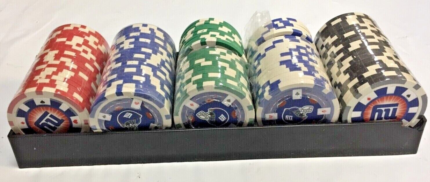 New York Giants Poker Chips 100 pc - Open Box- Missing (3) - 97 Total