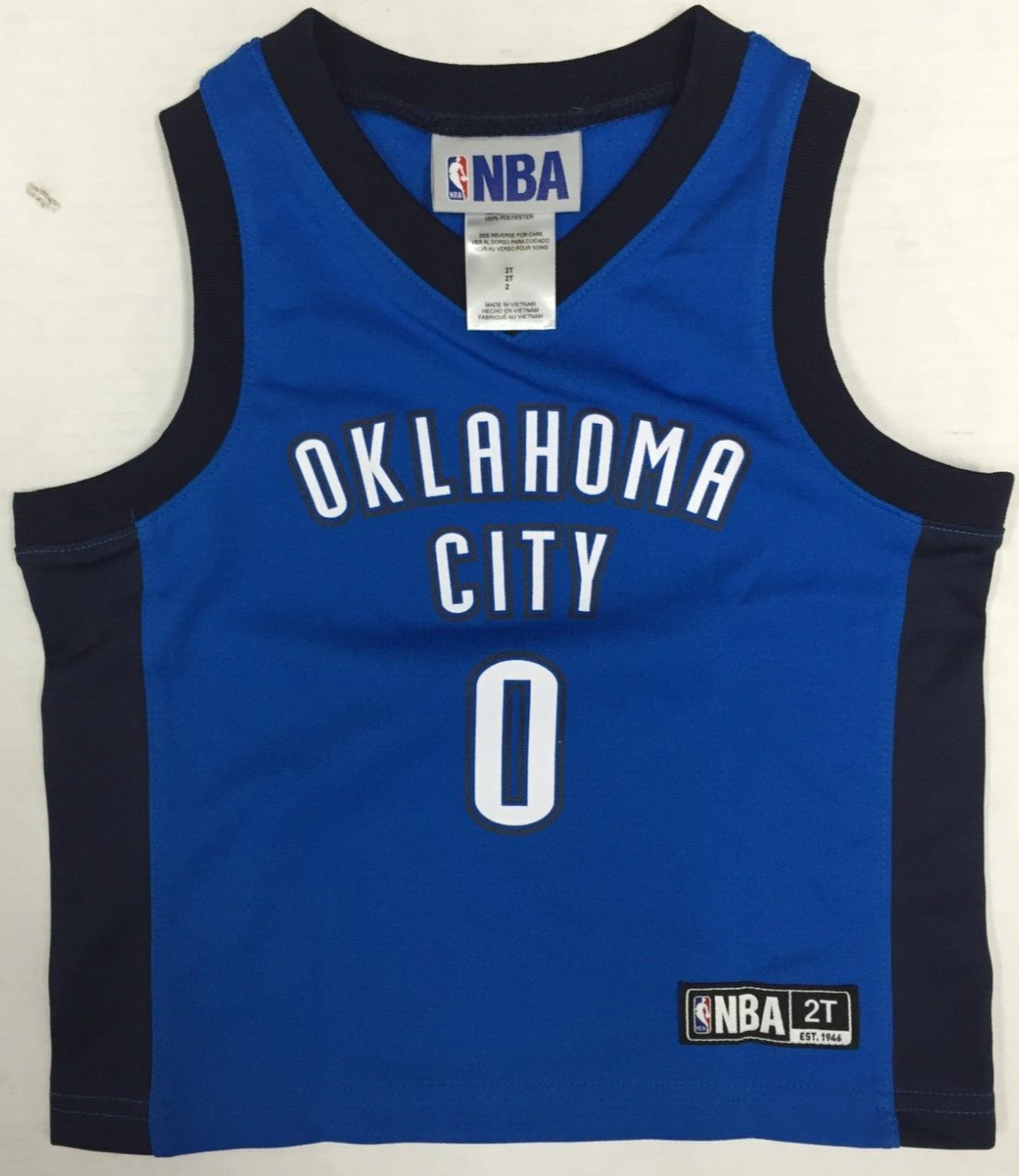Russell Westbrook Oklahoma City Thunder #0 Toddler Boy's Home Player Jersey 2T 100% Polyester 100% Authentic Officially Licensed Merchandise Fast and Free Lighting Shipping Ebay Seller Since 1998