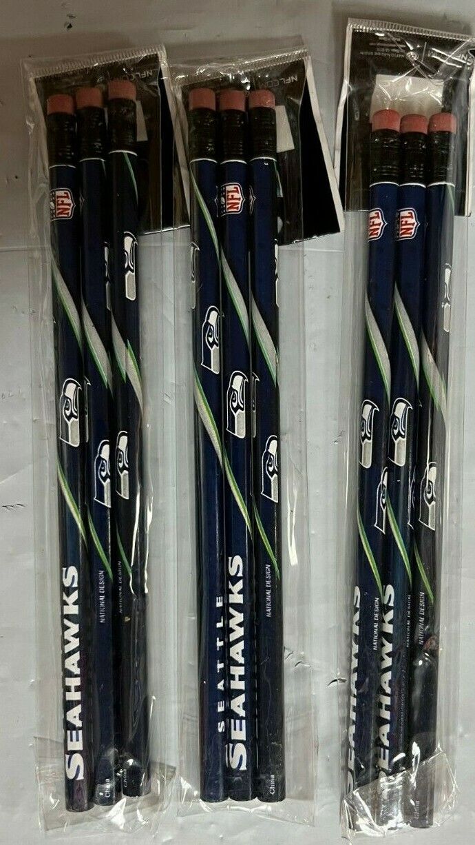 Seattle Seahawks NFL 3 Pack Pencils National Design - (3 Sets of 3)
