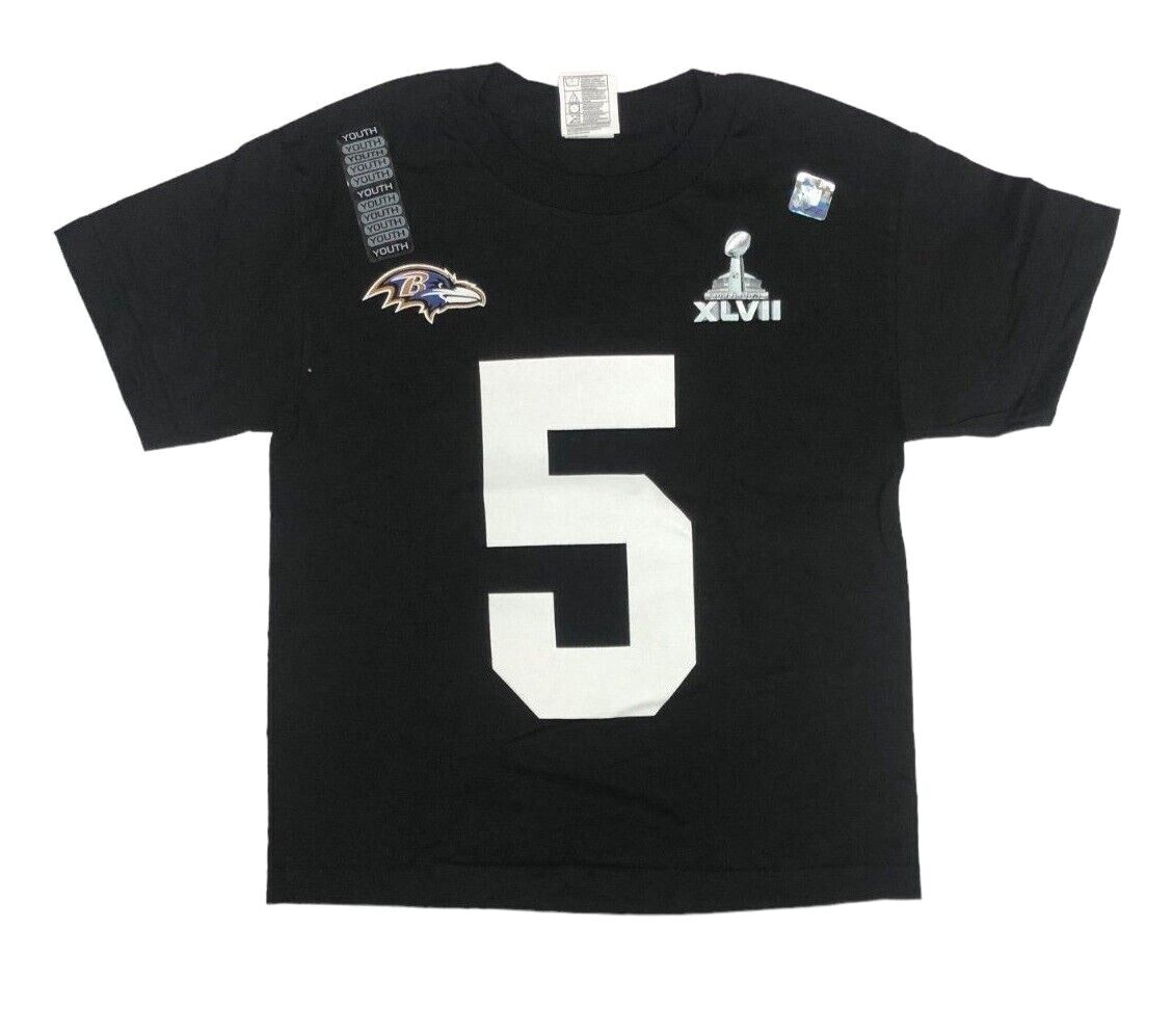 Baltimore Ravens Super Bowl XLVII #5 Joe Flacco Boy's T-Shirt Officially Licensed 100% Cotton Machine Washable Fast and Free Shipping Trusted Ebay Seller Since 1998