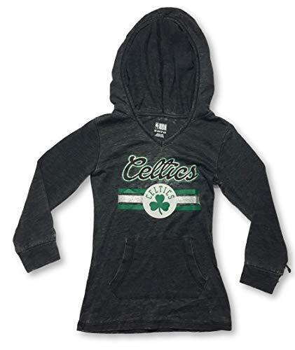 Boston Celtics Sparkle Lightweight Sheer Girl's Hooded Long Sleeve Shirt S 6/6X