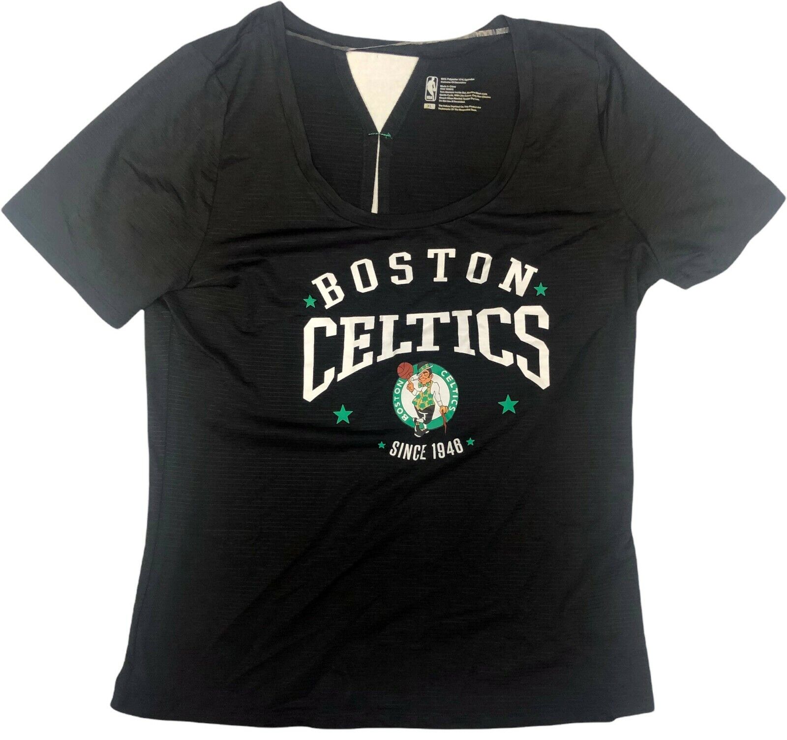 Boston Celtics Women's Short Sleeve Shirt Black SMALL 4/6 88% Poly/12% Spandex 100% Authentic Officially Licensed Fast and Free Shipping US Based Ebay Seller Since 1998