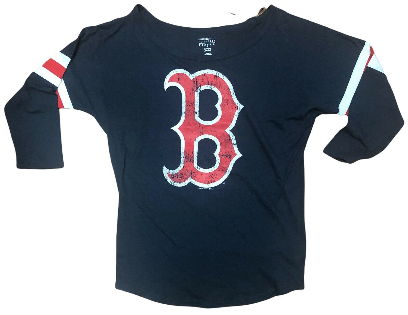 Boston Red Sox Women's Distressed Long Sleeve T-Shirt Blue 100% Authentic Officially Licensed Merchandise Brand NEW 100% Cotton Machine Washable Fast and Free Lighting Shipping Ebay Seller Since 1998
