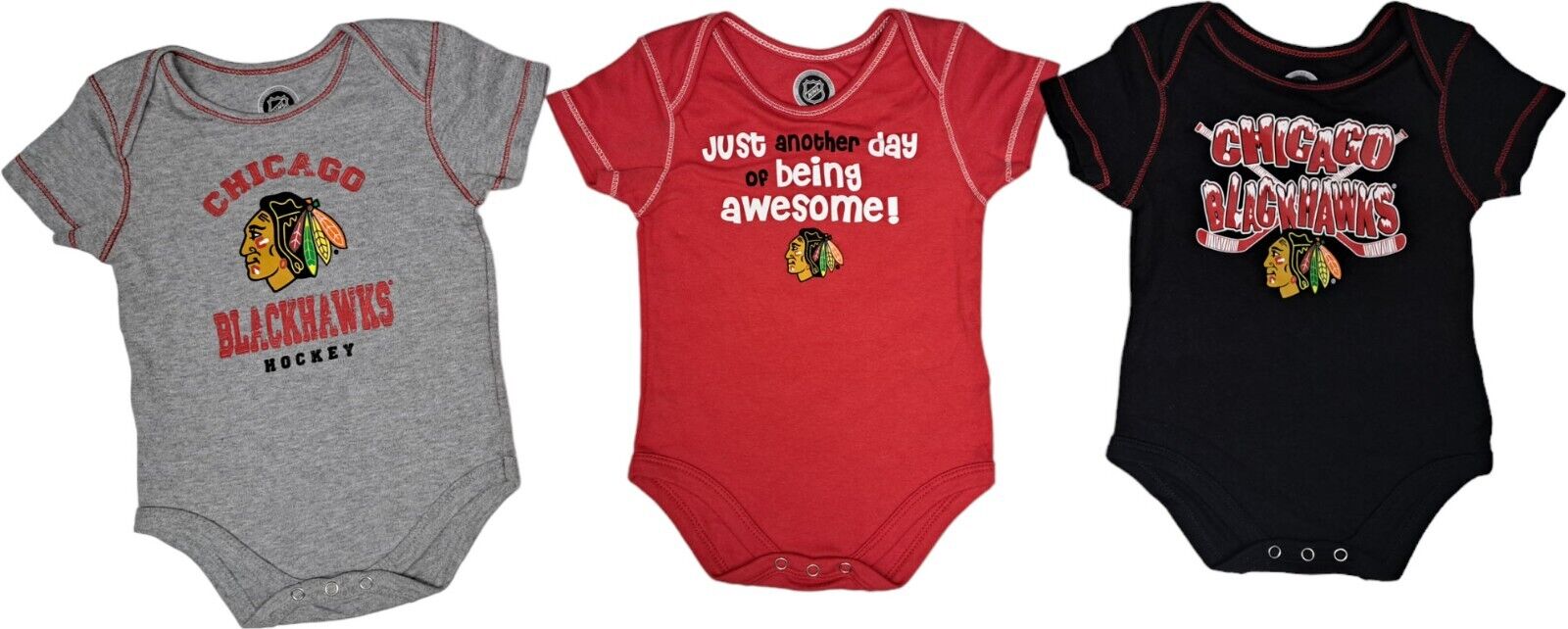 Chicago Blackhawks NHL Hockey Boy's Creeper 3 Piece Set 12 Months