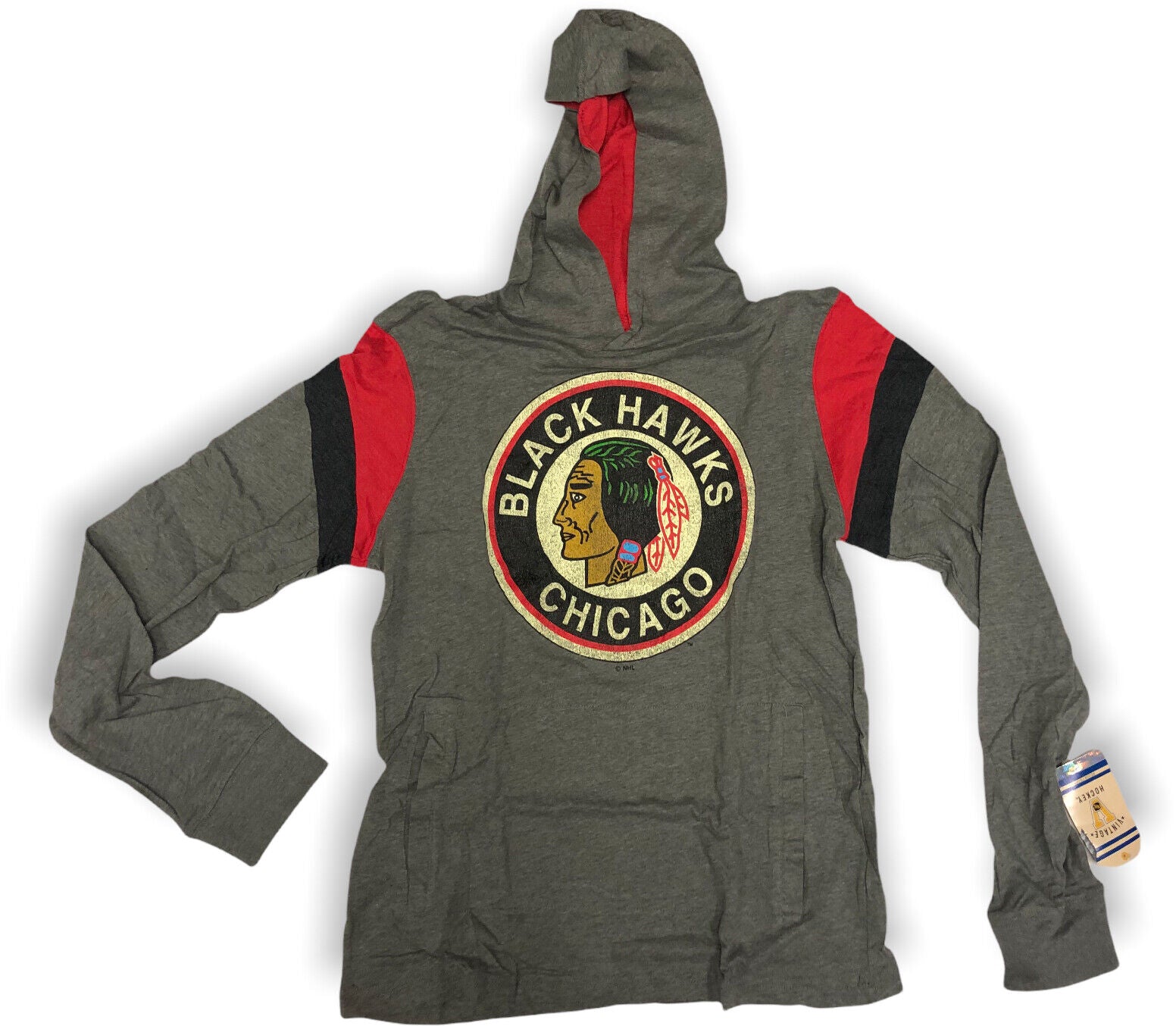 Chicago Blackhawks NHL Men's Long Sleeve Hooded Distressed T-Shirt Small