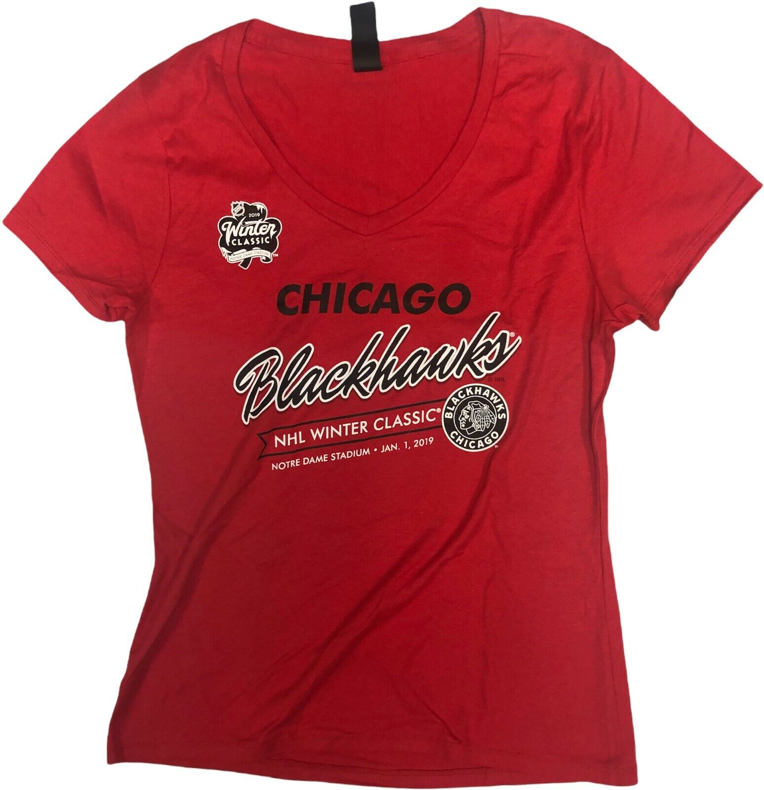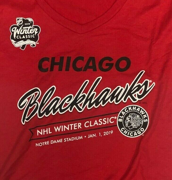 Chicago Blackhawks NHL Women's 2019 Winter Classic T-Shirt Red Small Warehouse Find Brand New 100% Authentic Officially Licensed Merchandise 100% Cotton Blend Machine Washable Fast and Free Lighting Shipping Ebay Seller Since 1998
