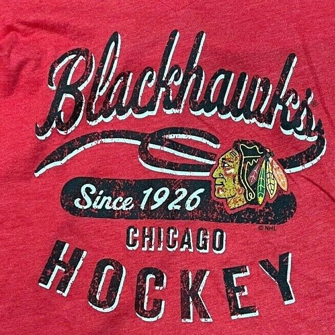 Chicago Blackhawks NHL Women's V-Neck Short Sleeve T-Shirt Red Small 4/6 100% Authentic Officially Licensed Merchandise 60/40 Cotton Blend Machine Washable Fast and Free Lighting Shipping Ebay Seller Since 1998