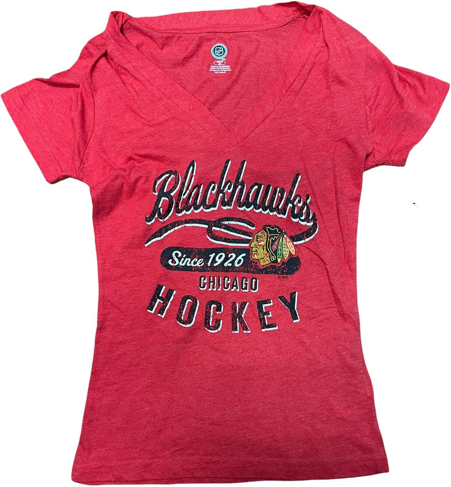 Chicago Blackhawks NHL Women's V-Neck Short Sleeve T-Shirt Red Small 4/6
