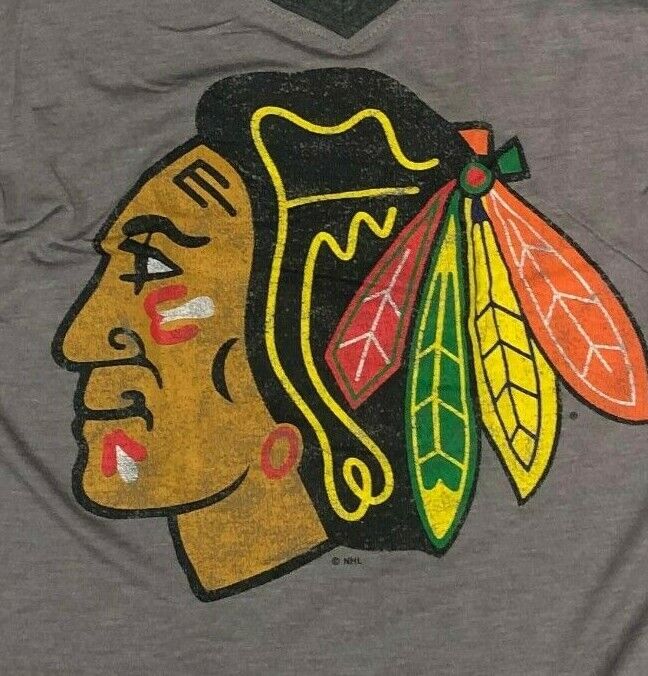 Chicago Blackhawks Women's Distressed Logo 3/4 Sleeve T-Shirt Gray Medium 8/10