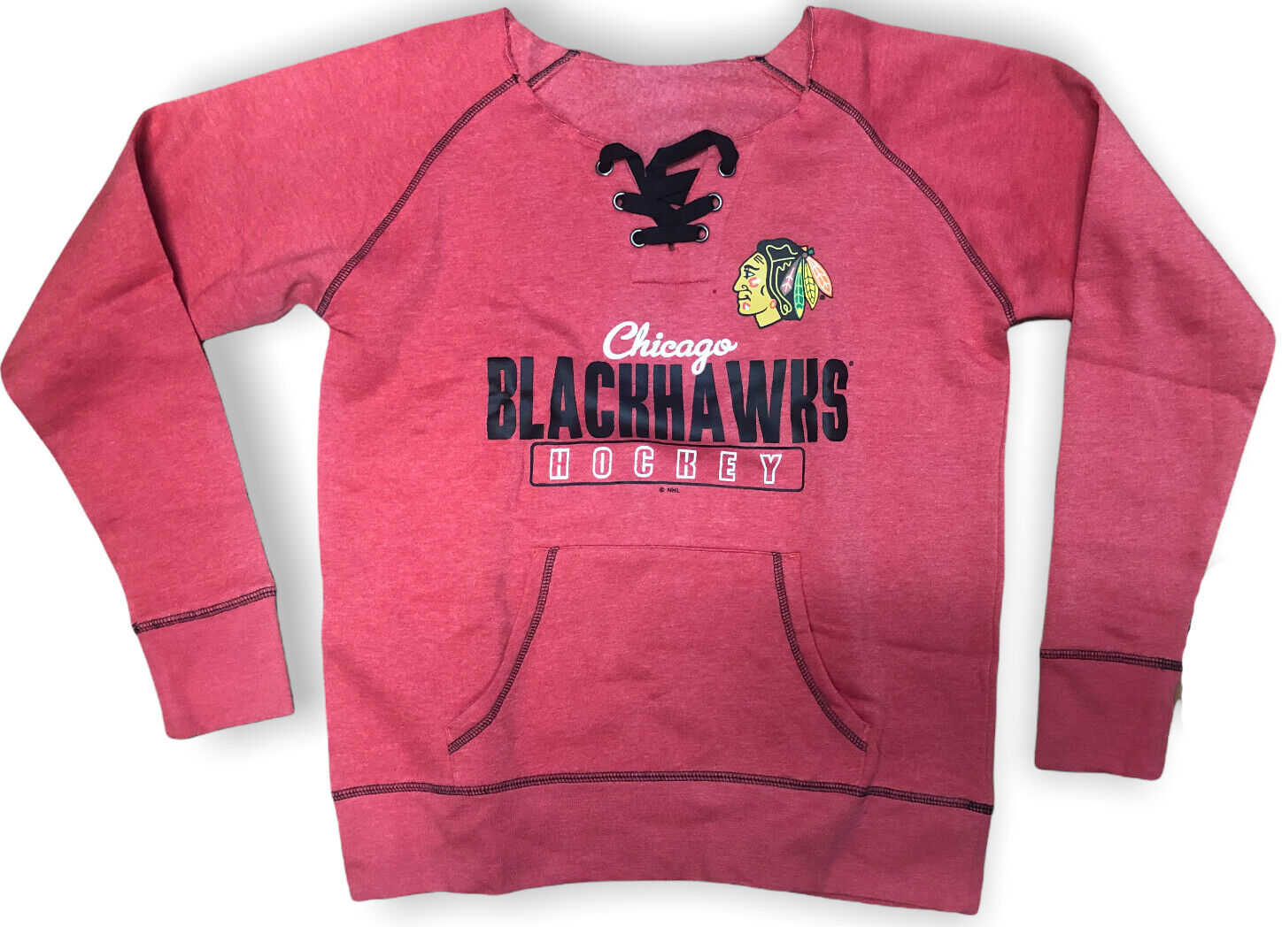 Chicago Blackhawks Womens Lace Up Sweatshirt Red 60/40 Cotton Soft and Comfortable Machine Washable Fast and Free Lighting Shipping Ebay Seller Since 1998