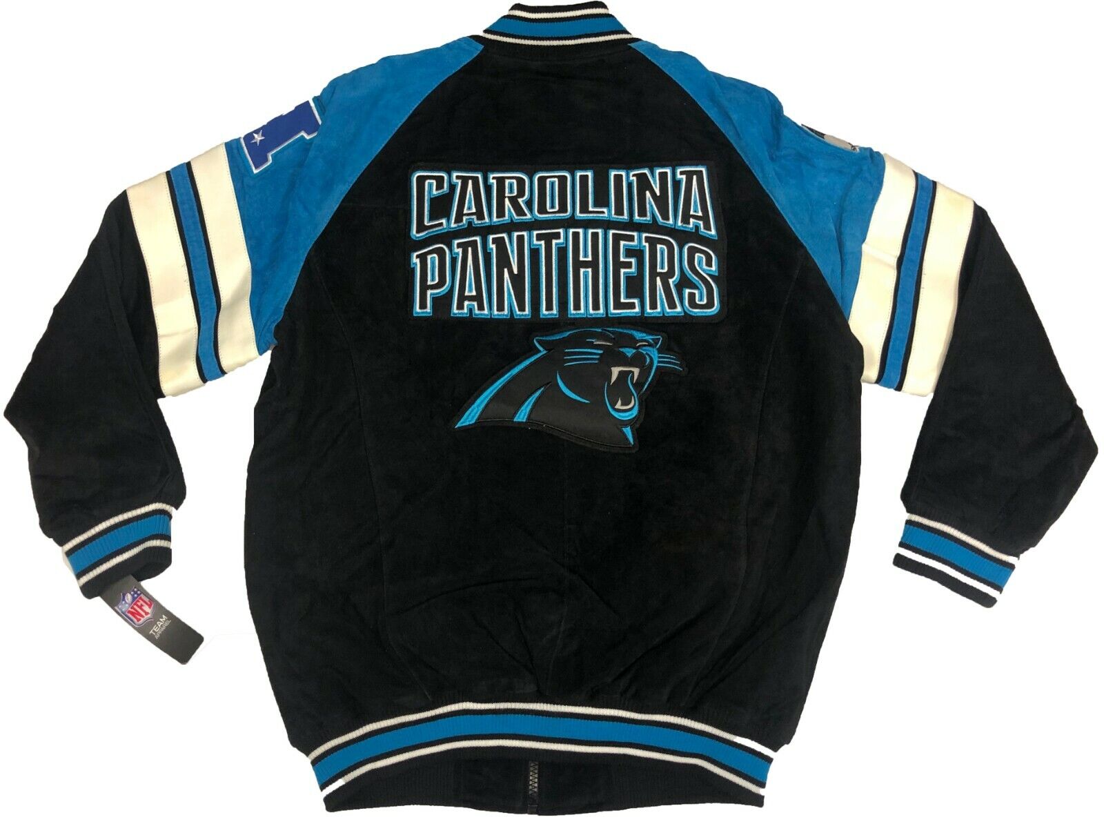 GIII Carolina Panthers Men's Full Zip Suede Leather Jacket NWT