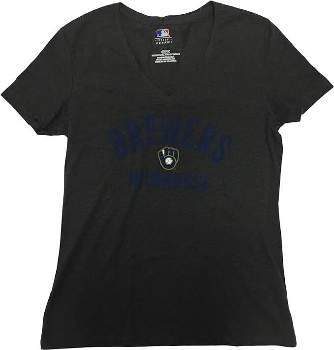 Milwaukee Brewers MLB Women's Charcoal V-Neck T-Shirt Small 4/6
