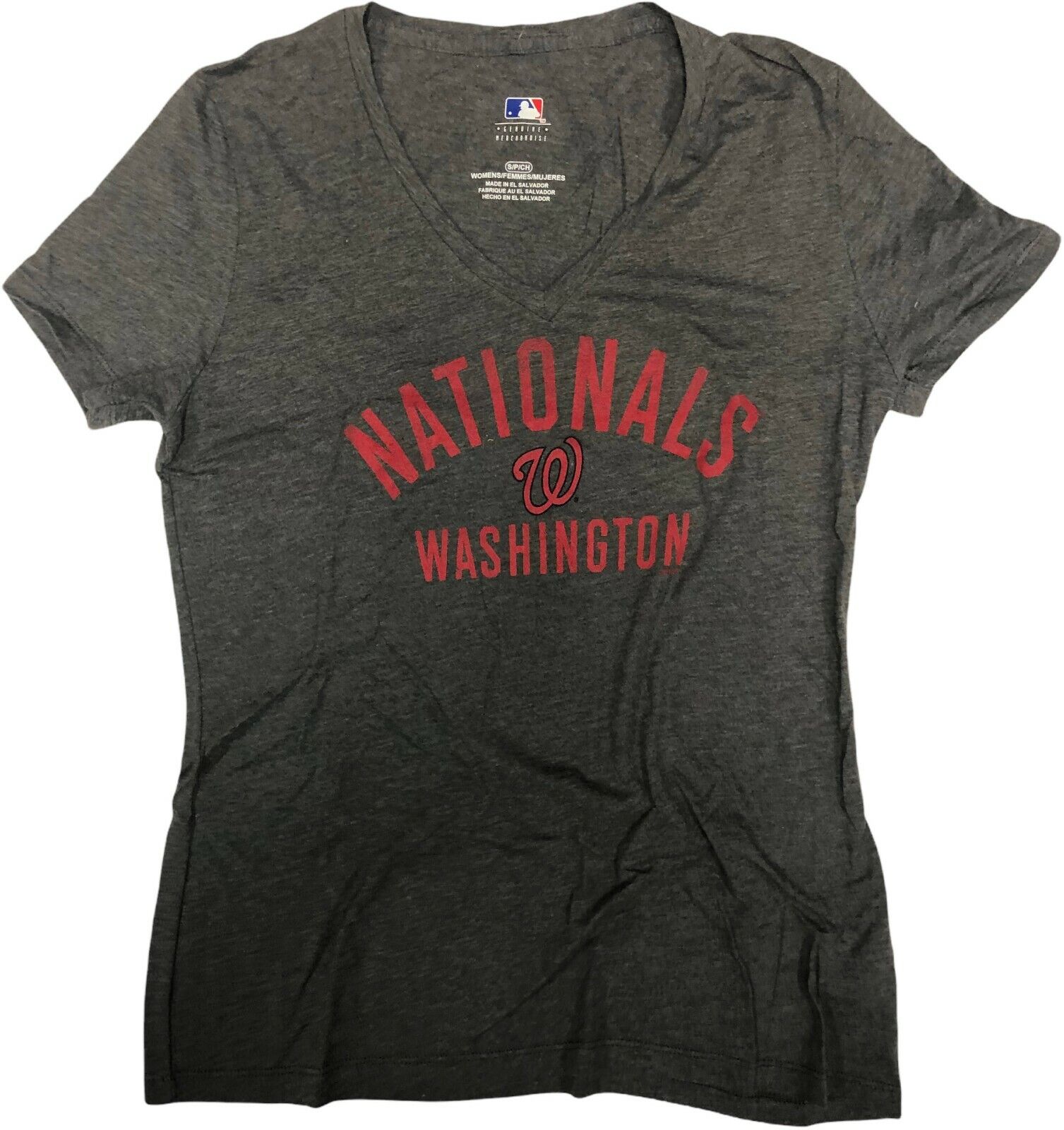 MLB Washington Nationals Baseball Women's V-Neck Short Sleeve T-Shirt Gray Small 100% Authentic Officially Licensed Merchandise 50/50 Soft Cotton Machine Washable Fast and Free Lighting Shipping Ebay Seller Since 1998