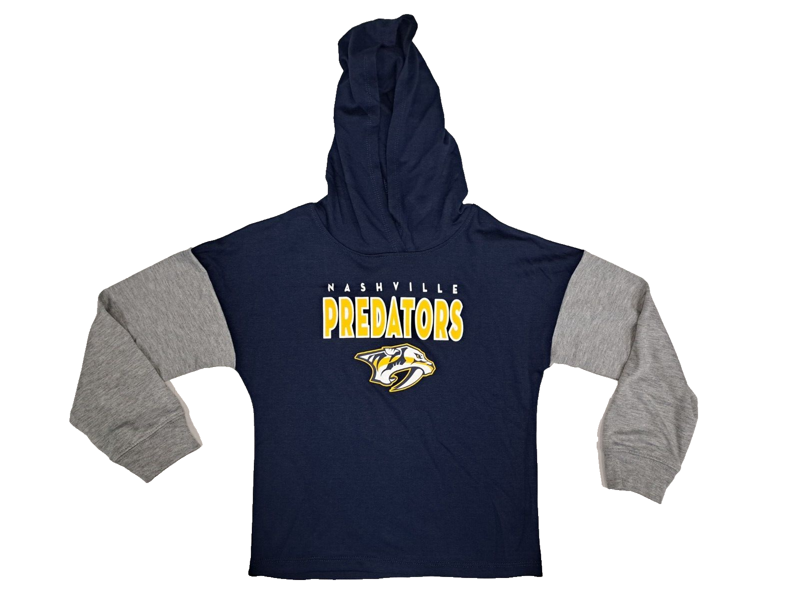 Nashville Predators NHL Girl's Youth Pullover Hoodie Shirt Small 6/6X Shell is 64% Polyester / 33% Rayon / 3% Spandex 100% Authentic Officially Licensed Merchandise - New With Tags Soft and Comfortable Fast and Free Lighting Shipping Ebay Seller Since 1998