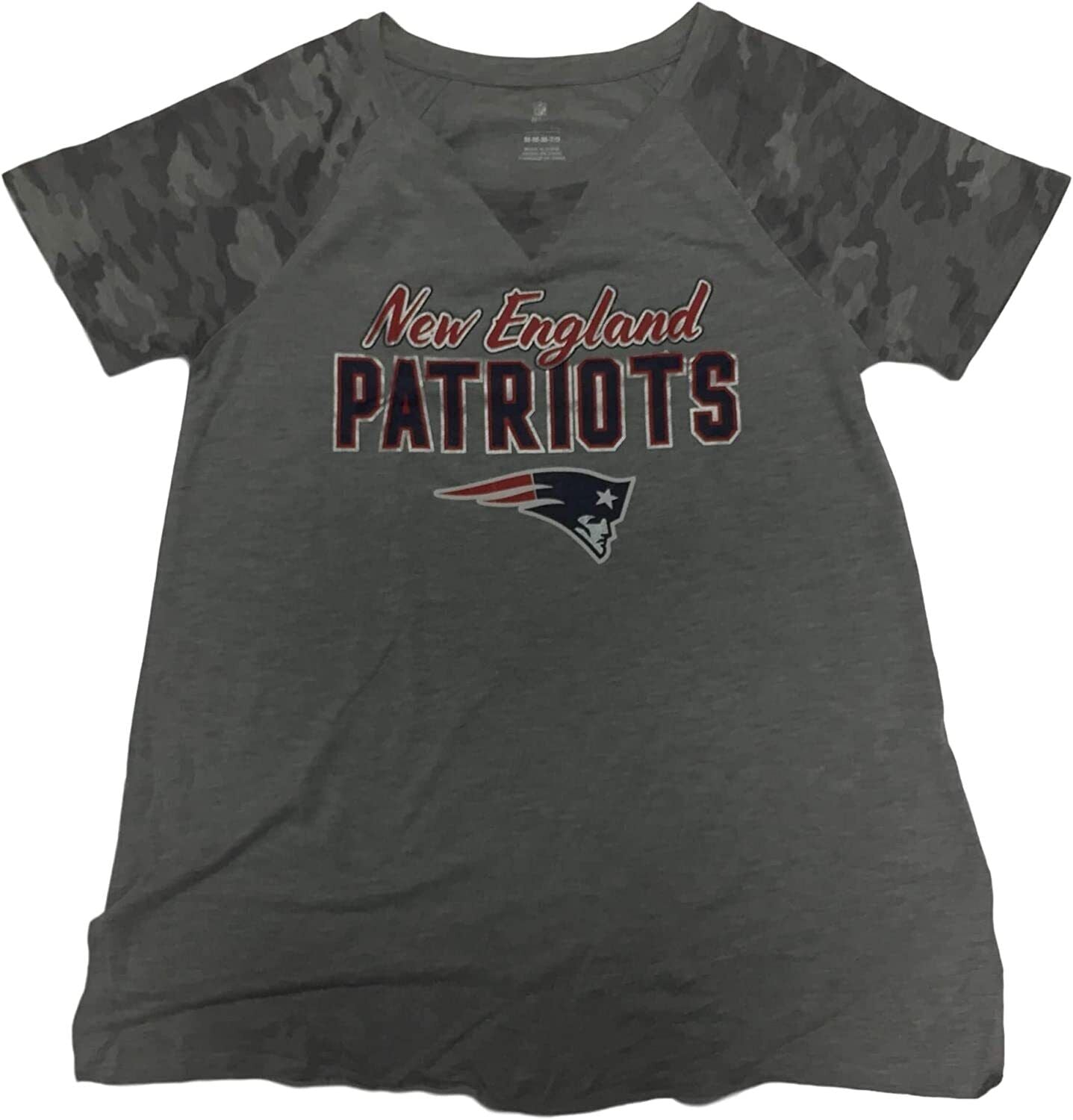 New England Patriots Women’s Teens Juniors Camo/Gray Sleeves T-Shirt CHOOSE SIZE