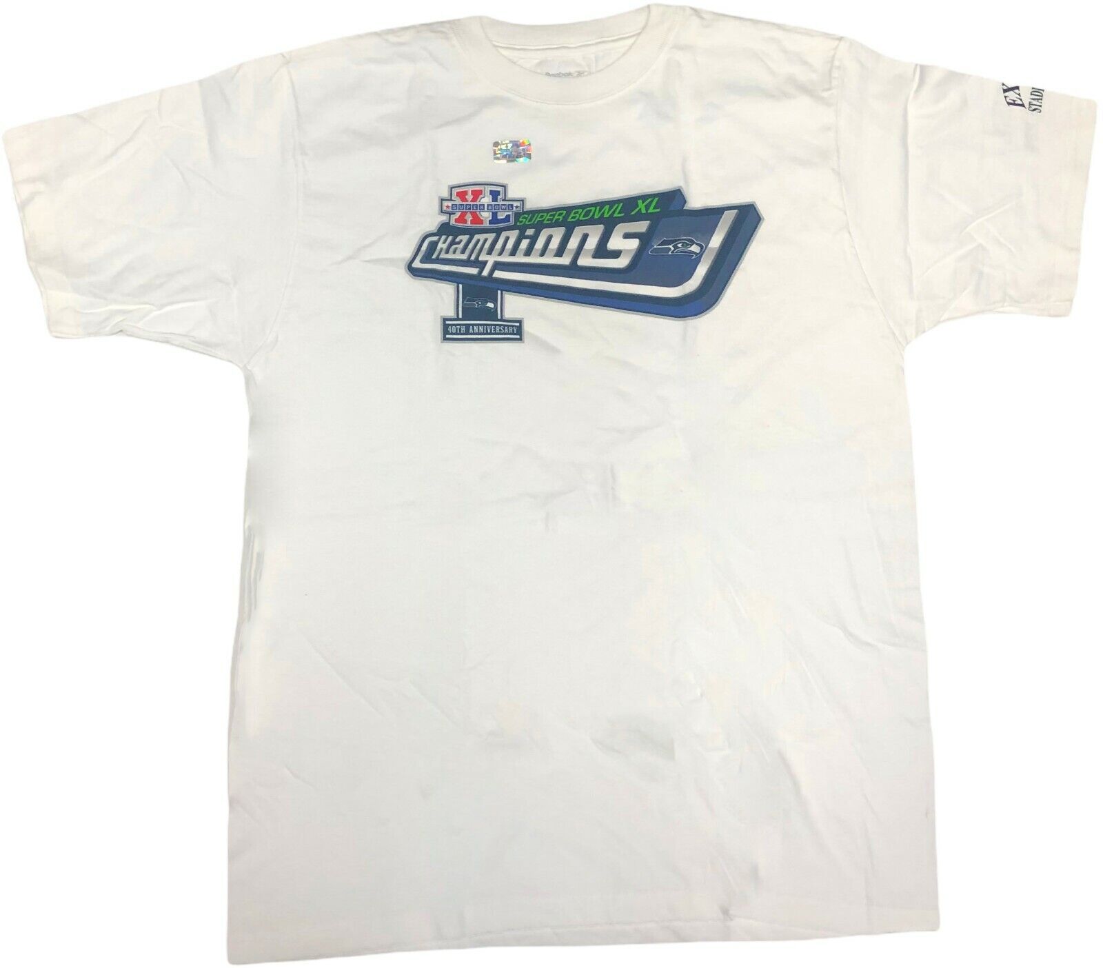 Reebok Seattle Seahawks Super Bowl XLVIII 40th Anniv Men's Locker Room T-Shirt Warehouse Find Brand New Original Locker Room T-Shirt !00% Authentic Officially Licensed Merchandise 100% Cotton Machine Washable Fast and Free Shipping Trusted Ebay Seller Since 1998