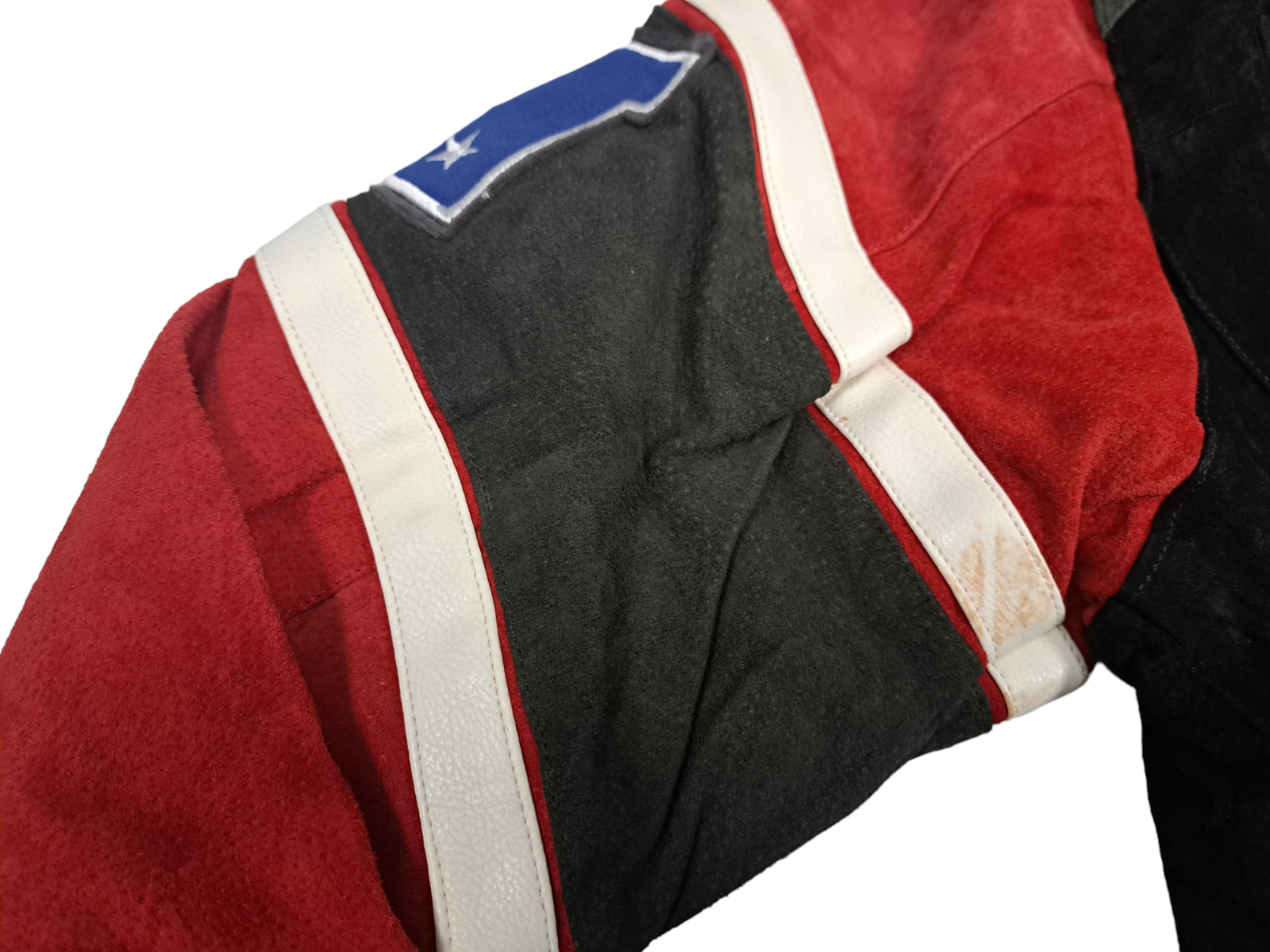 During the manufacturing process of this item, there is slight discoloration on the white striped areas of the sleeves from the color of the jacket rubbing on it. We are offering an unbeatable delivered price on this item with 100% customer satisfaction guaranteed. In the listing images, we have noted this, please see photos for specific coloration issues.