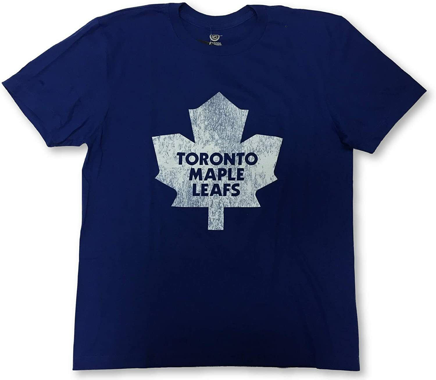 Toronto Maple Leafs NHL Distressed Leaf Logo Blue Adult T-Shirt SMALL